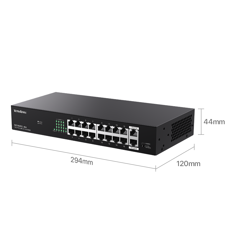 S218GPC-BH是Tenda自主设计的一款16口百兆2口千兆上联非网管PoE交换机。兼容AF/AT/BT 标准PoE供电方式,智能识别受电设备。1~2口PoE最大输出60W,3~16口PoE最大输出30W,整机167W。支持机架安装,支持PoE看门狗、智能功率控制、网络延长等功能,专为监控组网需求打造,是中小企业、便利商超、街边餐饮视频监控组网的理想选择。