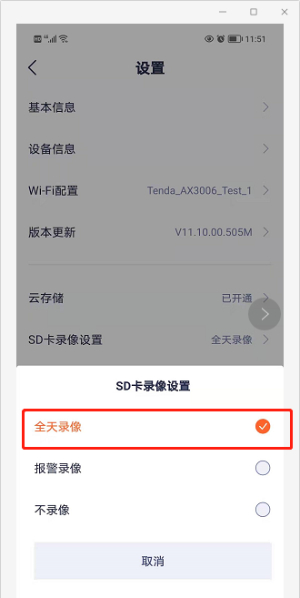 当然,录像时间保存长度也相比移动侦测录像更短。如果您想改回移动侦测录像,按照上述步骤选择录像计划为移动侦测录像即可。