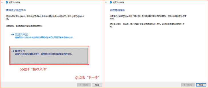 2、选择“接收文件”,点击“下一步”,等待对端设备发送文件。
