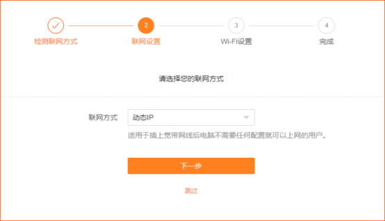 联网方式保持默认,无需修改,点击“跳过”。