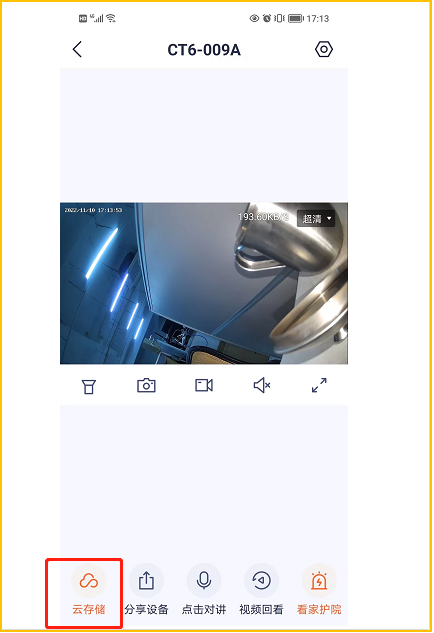 2.进入IPC后(直播界面),点击云存储