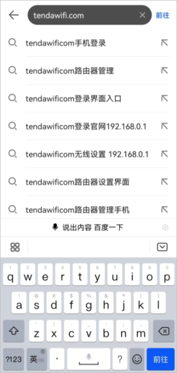 2. 打开浏览器,在地址栏(非搜索栏)输入路由器的管理地址tendawifi.com访问管理页面。