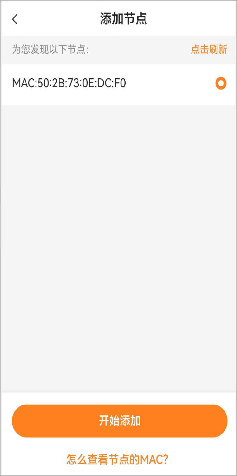 4. 系统发现新节点后,根据设备MAC地址选择新增路由器,然后点击开始添加。下图仅供参考。