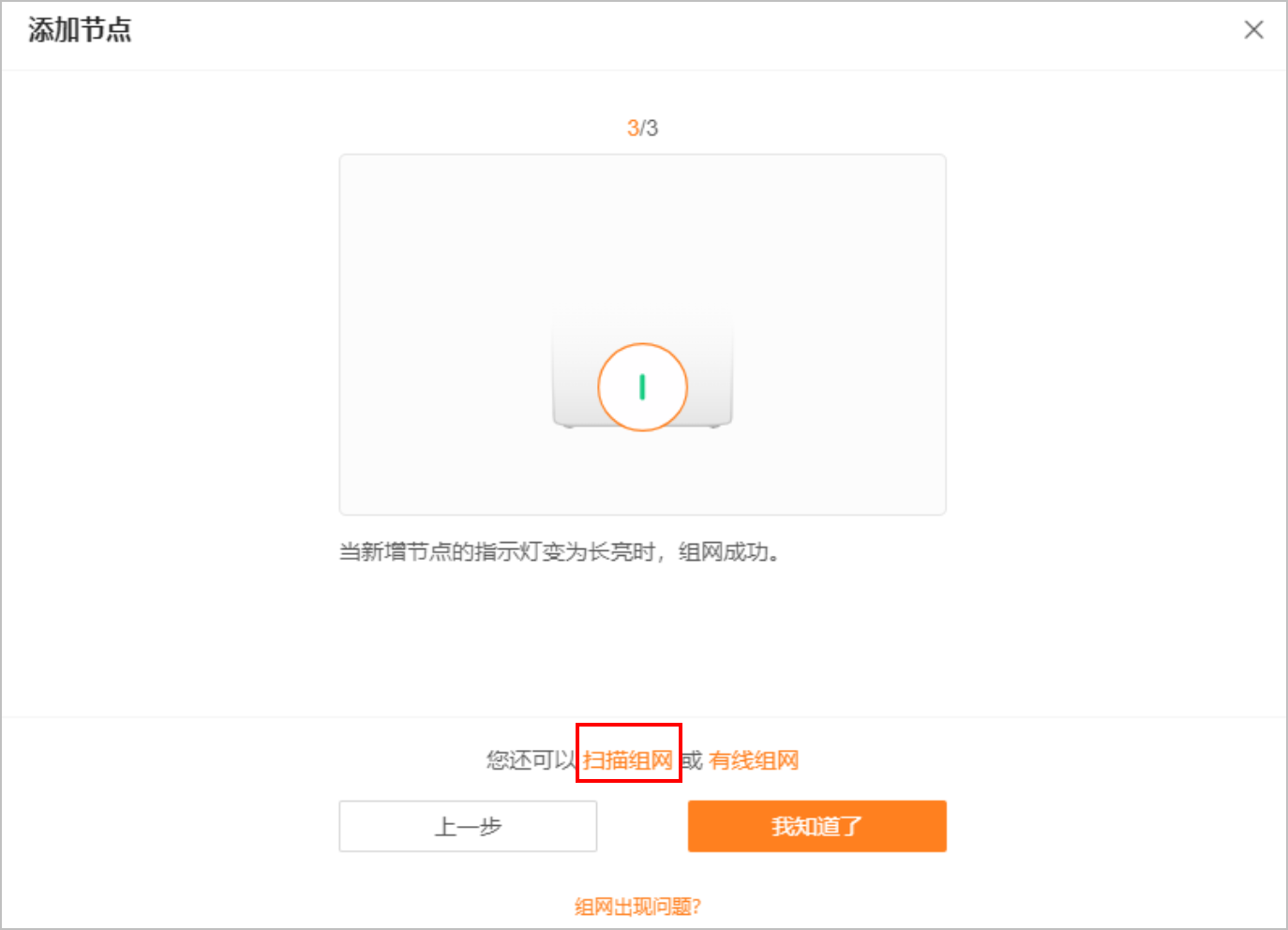 新增节点指示灯变为绿色长亮时,组网成功并成为子节点。所有节点的Wi-Fi名称、Wi-Fi密码相同。若要添加多个节点,请逐一添加。