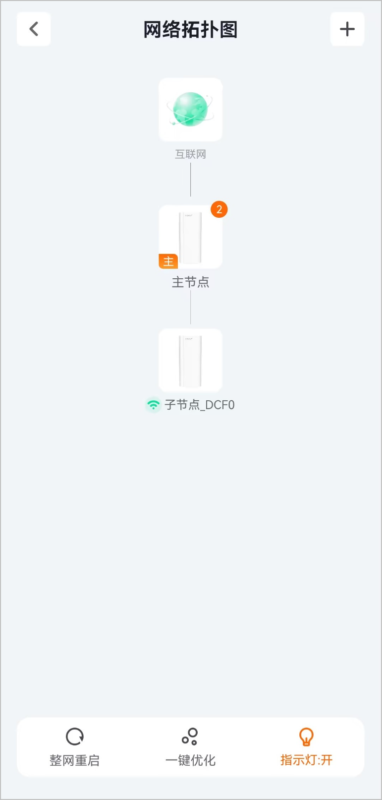 约1分钟后,当新增路由器(部署在卧室)的指示灯变为绿色长亮时,组网成功并成为网络中的子节点。所有节点的Wi-Fi名称、Wi-Fi密码相同。若要添加多个节点,请逐一添加。