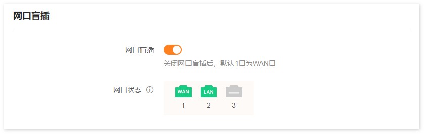 关闭路由器网口盲插功能后,网口1为WAN口,其他网口为LAN口。