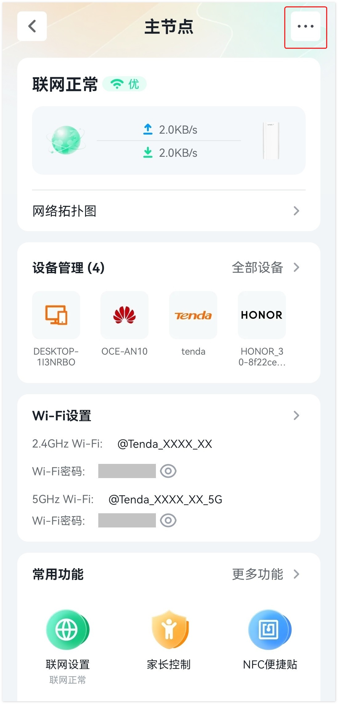 1. 使用Tenda WiFi App管理当前网络。