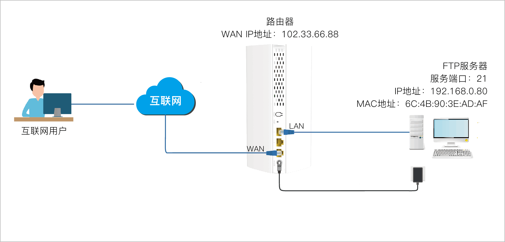 【场景】您在局域网搭建了一个FTP服务器,需要将该FTP服务器资源共享给互联网上的朋友。