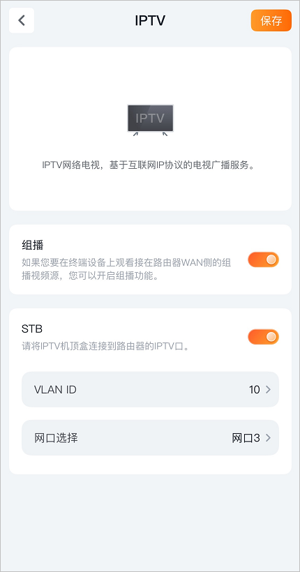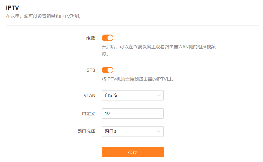 2)设置IPTV业务VLAN ID。此处以VLAN 10为例。