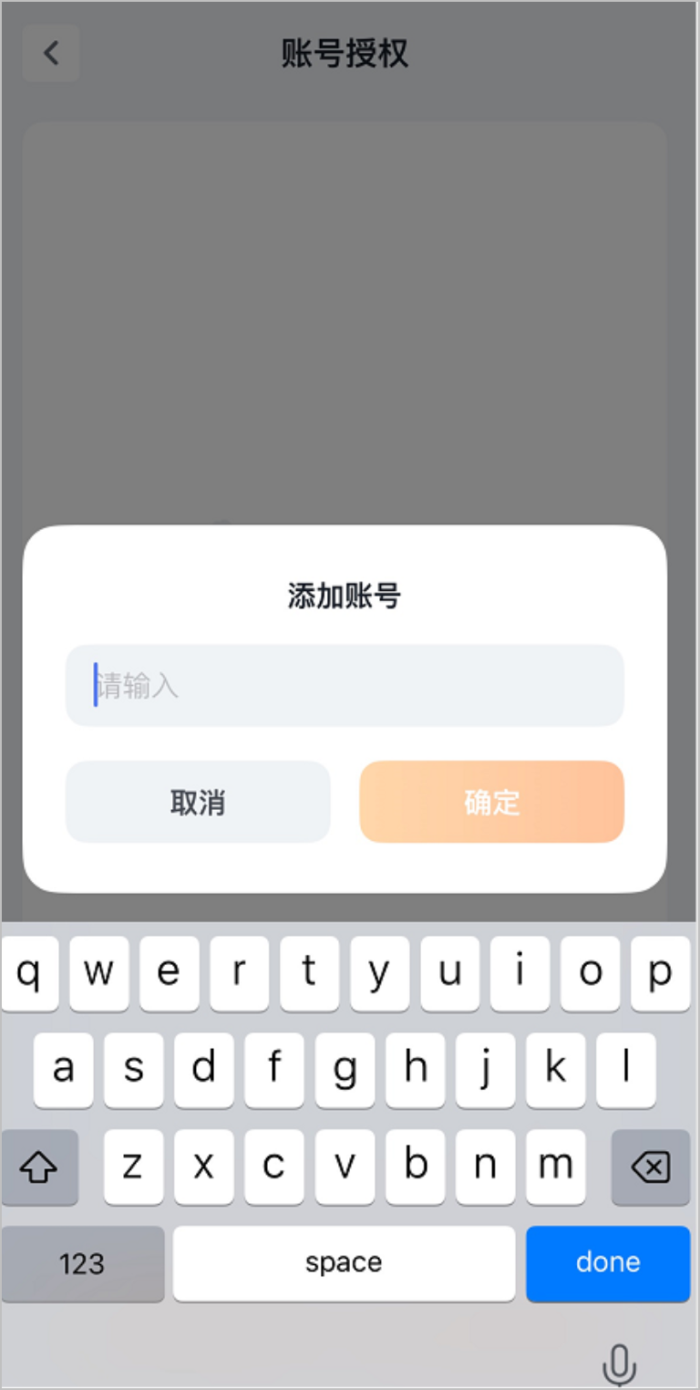 4. 点击+添加账号,输入要授权的账号名,点击确定。下图仅供参考。