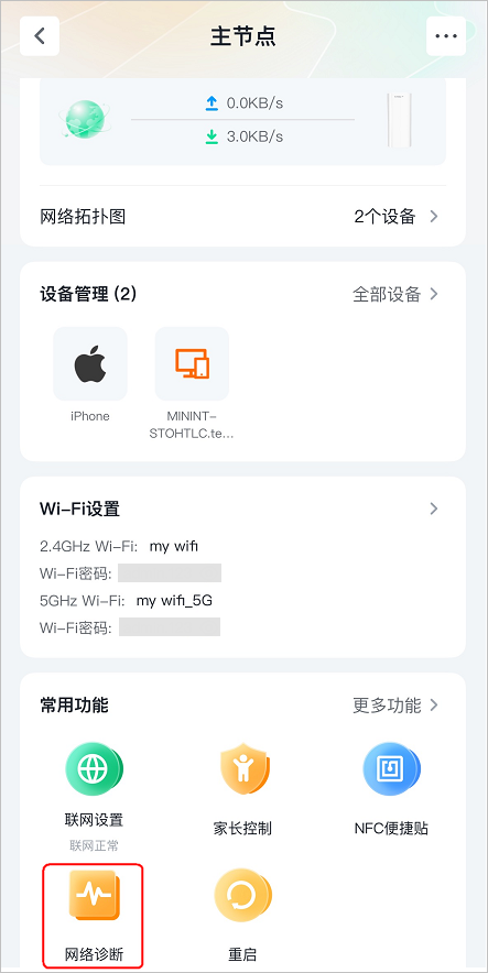 3. 点击更多功能>网络诊断。