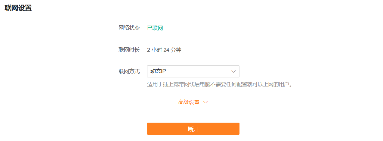 3. 点击联网设置,设置本路由器通过“动态IP”联网方式进行联网。