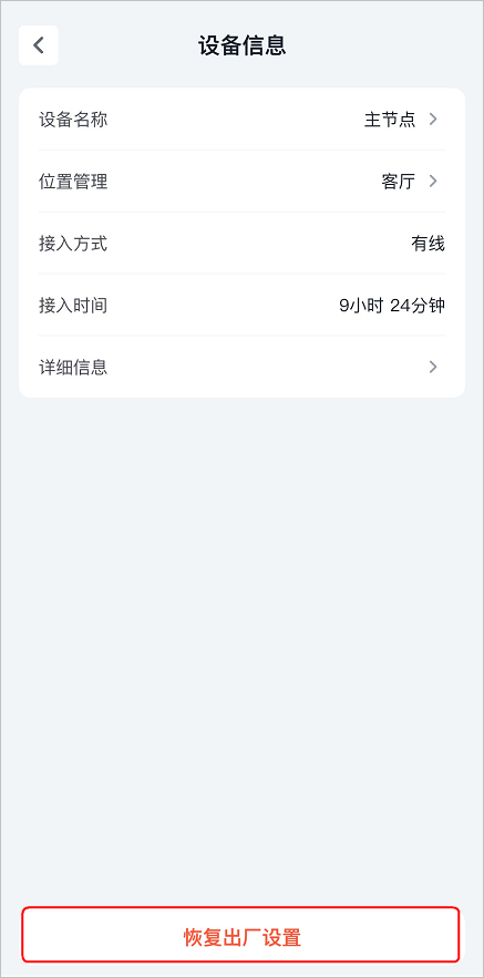 3. 进入配置页面,将节点恢复出厂设置。