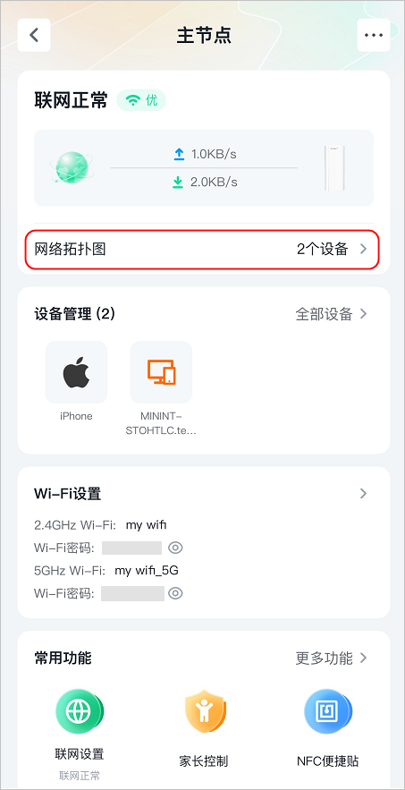 3. 点击网络拓扑图,点击要恢复出厂设置的节点。下图仅供参考。