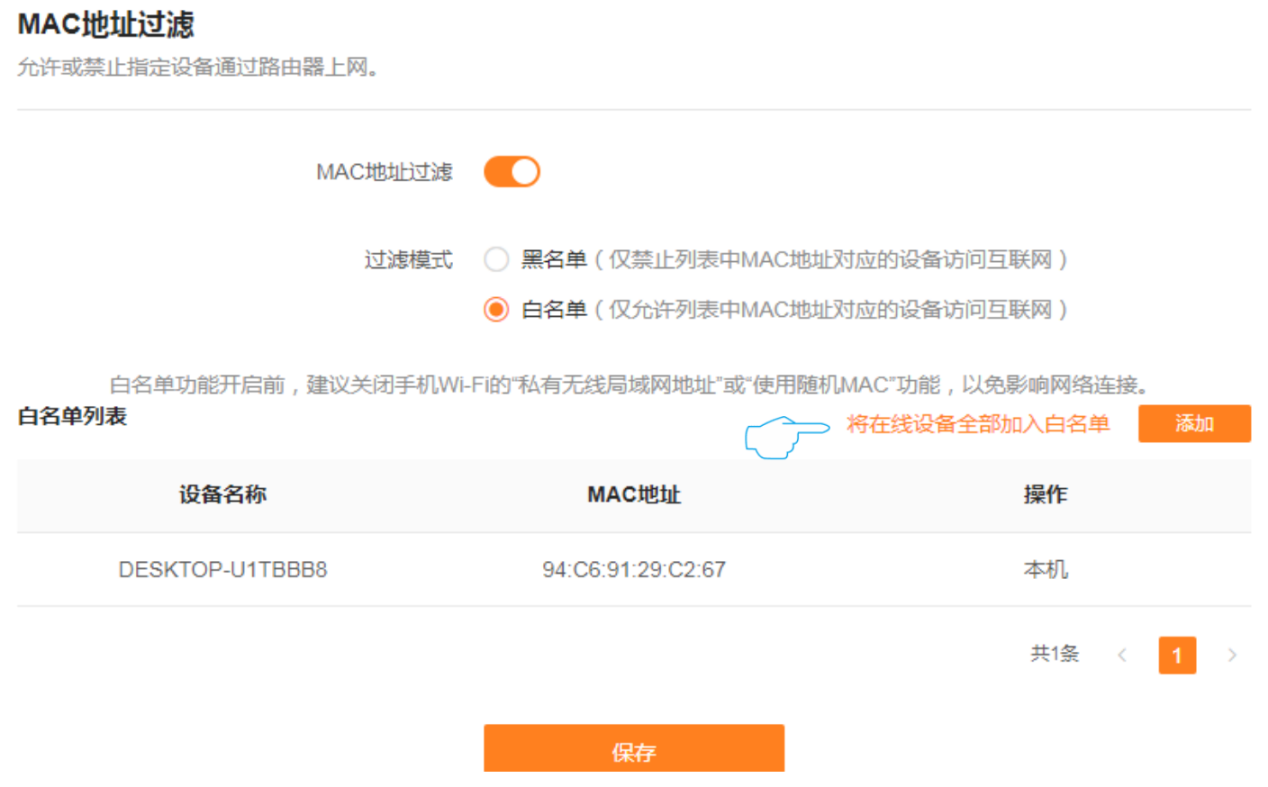 2、设置无线MAC地址过滤