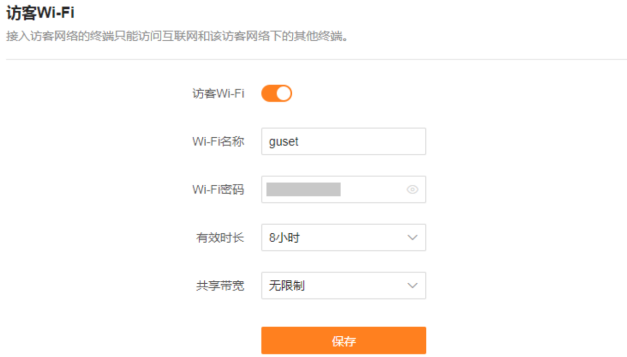 如果您的路由器支持访客无线网络,请为访客开启专用的无线网络。开启访客网络后,客人可以连接到专用的无线信号,与家庭网络隔离,同时也防止家庭网络无线密码被泄露。