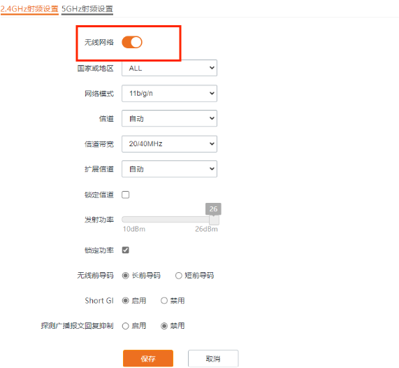 如果找不到无线SSID,可能是因为无线射频开关被关闭或无线广播被禁用。检查WEB页面上的射频开关状态。