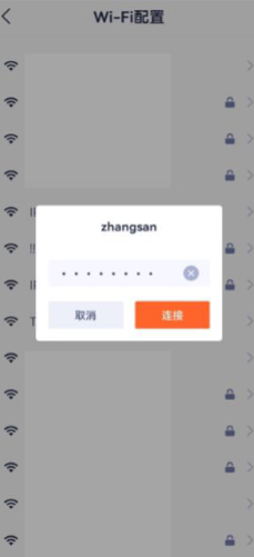 3.切换新的 Wi-Fi名称,输⼊⽆线密码,点击连接,等待语音提示切换成功后重新登录app即可。
