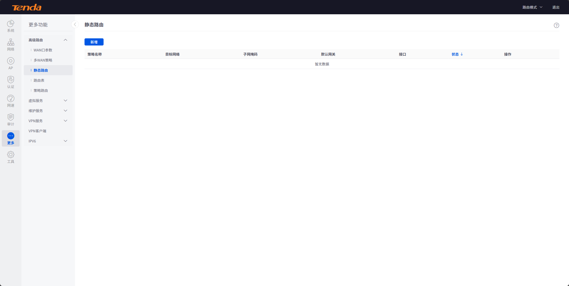 点击“更多”-“高级路由”-“静态路由”
