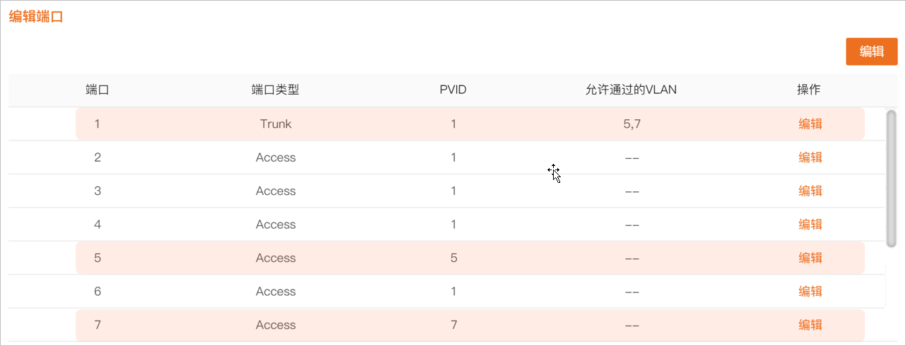 3. 在“编辑端口”模块,配置某端口或多个端口的VLAN信息。